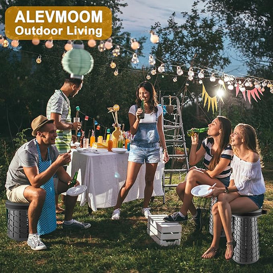 ALEVMOOM 2025 Upgraded XXL Collapsilbe Stool with Cushion,More Sturdy and Height 19.7",D11.8,Portable and Lightweight Adjustable Chair Telescoping Stool for Camping Hiking BBQ Max Loading 1000Ibs