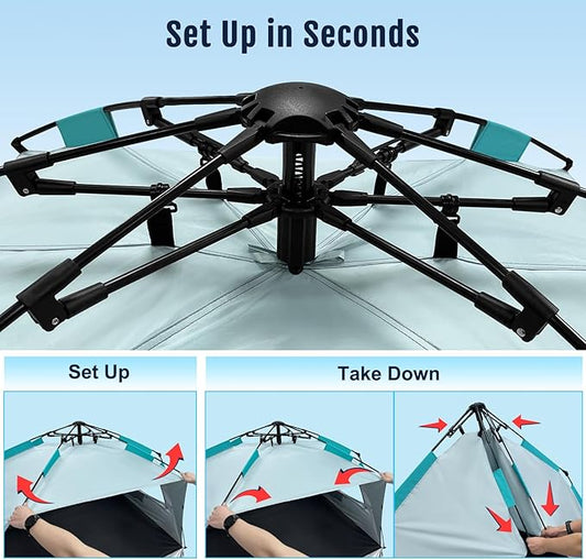 Beach Tent 12 X 12ft Large UPF50+ Pop Up Canopy with 2-Pcs Side Wall, Sun Shelter Rainproof, Waterproof for Camping Trips, Backyard Fun, Fishing, Parties, Or Picnics(Ocean Blue)