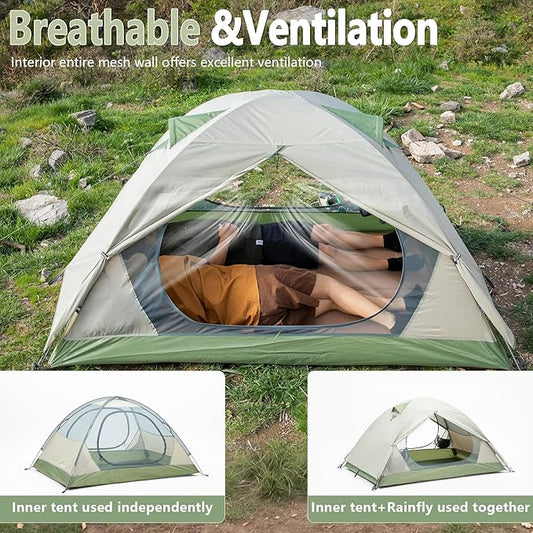 KAZOO Waterproof Backpacking Tent 2/3 Person Lightweight Camping Tents 2/3 People Hiking Tents Aluminum Frame Double Layer