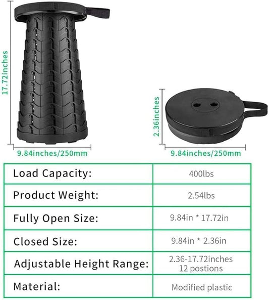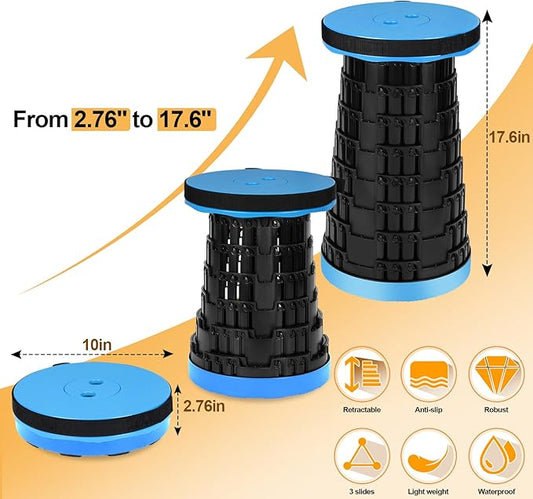 Collapsible Stool - Upgraded with 3 Slides Load Capacity 600lbs, Folding Camping Stool with 3-in-1 Carry Bag, Lightweight Sturdy Retractable Suitable for Camping Fishing Hiking BBQ (Blue)