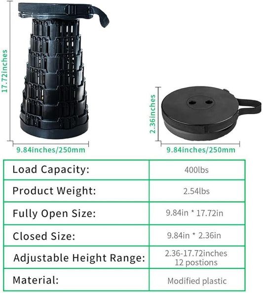 Upgraded Camp Chair,Portable Folding Stool,Folding Camp Chair,Collapsible Stool,Retractable Seat or Foot Rest,Foldable Camping Stool for Outdoor Fishing Hiking Gardening Travel BBQ -Max 400lbs (Black)