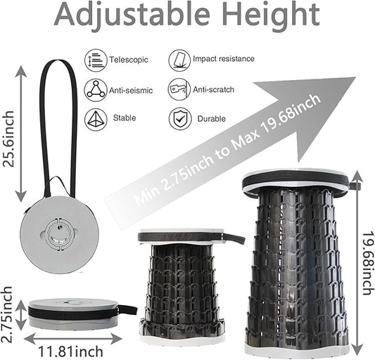 ALEVMOOM Upgraded 19.7" Portable Telescoping Stool,XXL Collapsible Stool with Cushion,Capacity 1000lbs Heavy Duty Retractable Folding Chair for Adults for Camping Fishing Hiking BBQ