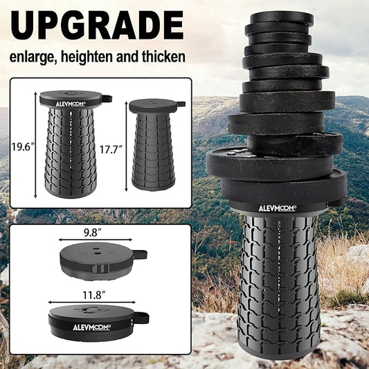 ALEVMOOM 2025 Upgraded XXL Collapsilbe Stool with Cushion,More Sturdy and Height 19.7",D11.8,Portable and Lightweight Adjustable Chair Telescoping Stool for Camping Hiking BBQ Max Loading 1000Ibs