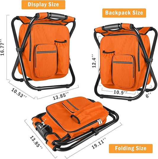 Kikerike Backpack Stool Cooler Chair Heavy Duty 400 LBS Max Load Portable Lightweight Stool Backpack Folding Fishing Cooler Seat for Camping Hunting Fishing - Orange