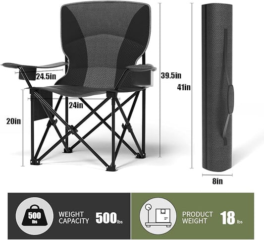 ALPHA CAMP Oversized Folding Camping Chairs for Adults High Backrest Heavy Duty Lawn Chairs Support 500 LBS Portable Camp Chairs with Cup Holders Large Side Pocket Outdoor Chair