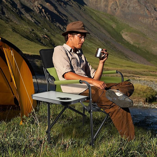 VILLEY Heavy Duty Directors Chair, Folding Camping Chairs, with Cooler Bag Portable Foldable Chair, for Camp Tailgating Lawn Picnic Fishing Beach, Supports 400 LBS, Green