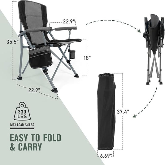 SUNNYFEEL Ergonomic High Back Camp Chair - 500lbs Heavy Duty Folding Chair, UV-Resistant Portable Camp Chair with Hard Armrests, Cup Holder& Bag for Outdoor, Basebal, Travel, Sports, Hiking, Fishing