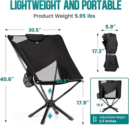 Portable High Back Camping Chair with Adjustable Height, Small Compact Outdoor Folding Chair for Adults Travel, Riselite Collapsible Lightweight Packable Camp Chairs, Easy Carry and Quick Setup