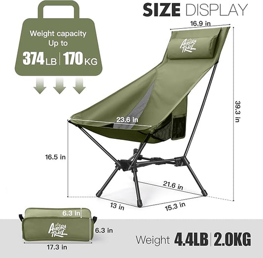 ayamaya Camping Chairs - Ultralight Folding High Back Camping Chair with Upgrade All Aluminum Widen Frame Structure