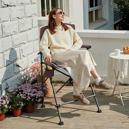 HIGH POINT SPORTS Camping Folding Chair, Heavy Duty Oversized Portable Outdoor Chair, Foldable Camp Chair with Cup Holder and Cooler Bag Support 450 LBS, Green…