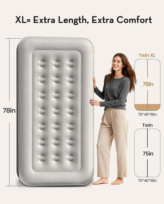 OhGeni Twin XL Air Mattress with Built in Pump for Guest, 18'' Colchon Inflables Blow Up Air Bed with Carrying Bag for Camping, Raised Elevated Double Airbed, Foldable & Portable Air Mattress, Black