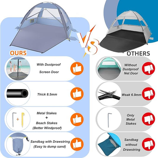 Venustas Beach Tent Sun Shelter for 3/4-5/6-7/8-10 Person, UPF 50+ UV Protection Beach Canopy, Lightweight and Easy Setup Cabana, Portable Shade Tent