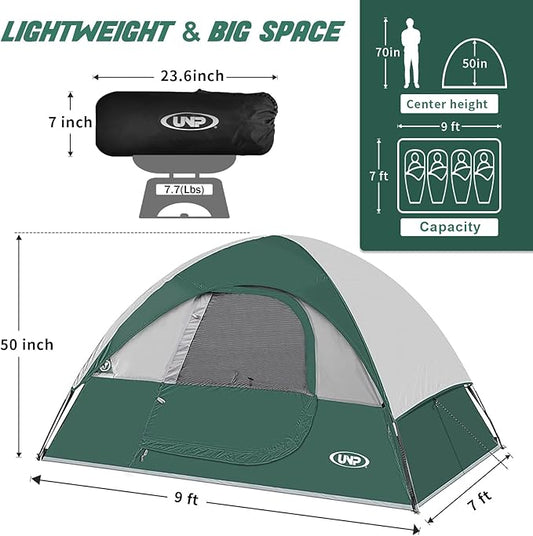 Camping Tent 4 Person, Waterproof Windproof Tent with Rainfly Easy Set up-Portable Dome Tents for Camping