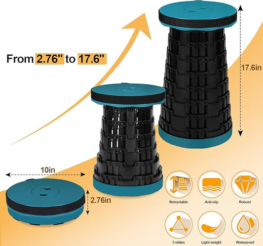 Upgraded Collapsible Stool with 3 Slides Load Capacity 660lbs, Folding Camping Stool with 3-in-1 Carry Bag, Lightweight Sturdy Retractable Suitable for Camping Fishing Hiking BBQ (Blue-green)