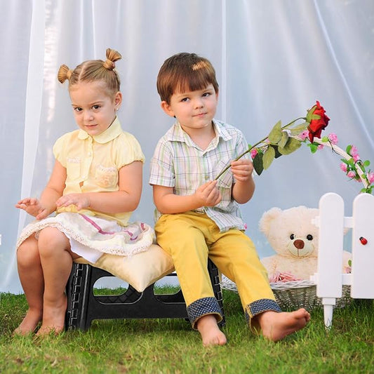 Delxo 9 Inch Folding Step Stool, Black Step Stools for Kids Foldable,Portable Collapsible Step Stool with Handle, Folding Stool for Kitchen Bathroom,Bedroom,Garden