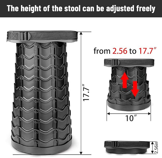 ALEVMOOM Upgraded Collapsible Stool with Cushion,440LBS Max Weight,17.7" Height Adjustable,Sturdy Portable Telescoping Stool,Folding Camping Stool for Outdoor Hiking Travel