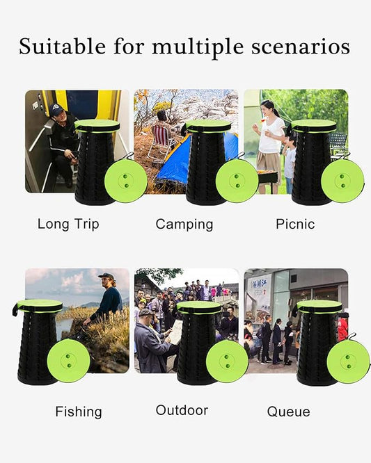 ALEVMOOM Portable Telescoping Collapsible Stool with Cushion & Bag, Retractable Folding Stool for Adults, Lightweight But Sturdy Capacity 440 lbs for Camping Fishing Hiking BBQ
