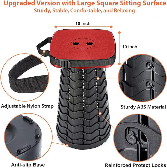 Fishboy Upgraded Square Collapsible Stool, 400lbs Max Weight, Lightweight But Sturdy, Portable Retractable Folding Telescoping Foldable Camping Stool for Adults Outdoor Fishing Hiking BBQ