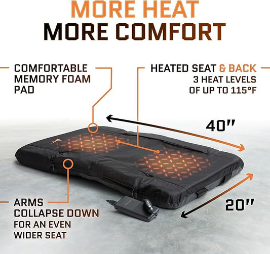 Aceletiqs Double Heated Stadium Bleacher Seat, 20-Inch Wide, Foam, Foldable, Cup Holders, Arm Rest, Reclining, Adjustable Backrest