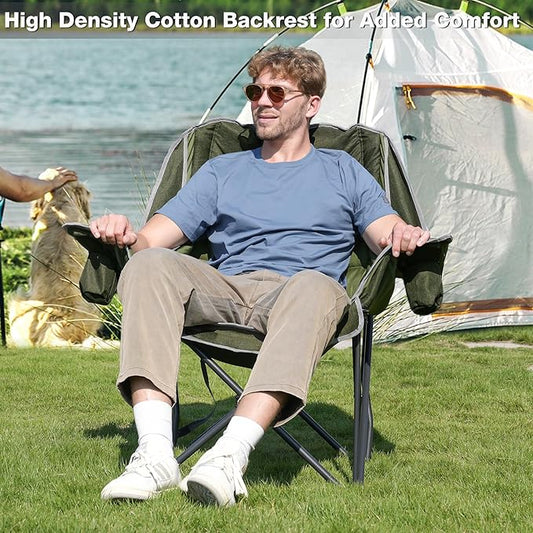 Oversized Camping Chair, Portable Folding Padded Camp Chairs with Side Pocket, Cup Holder, Heavy Duty Support 500LBS Outdoor Lounge Chair for Adults, Fishing, Sports, Trip, Green