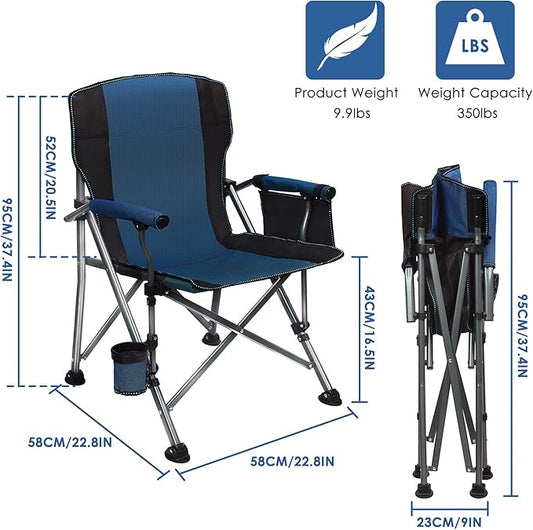 ALPHA CAMP Oversized Camping Folding Chair - Heavy Duty Steel Frame Support 350 LBS, Collapsible Padded Arm With Cup Holder, Quad Lumbar Back, Portable for Outdoor/Indoor