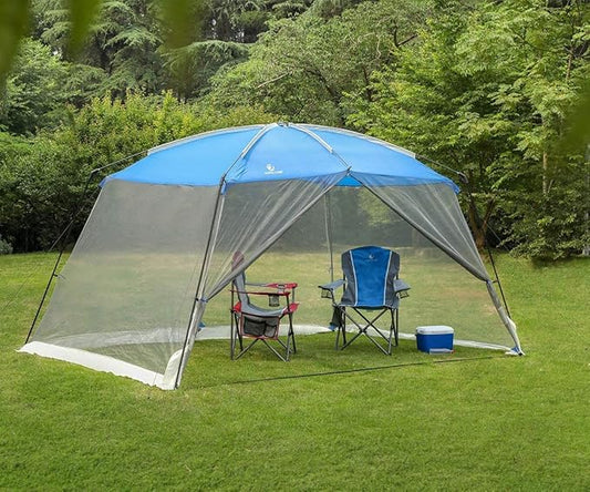 EVER ADVANCED Oversized Folding Camping Chair, for Adults Heavy Duty Lawn Chair with Side Pockets, Portable Collapsible Quad Chair for Outside, Support Up to 500lbs, Blue