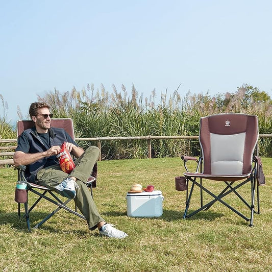 Overmont Oversized Folding Camping Chair - 450lbs Support with Padded Cushion Cooler Pockets - Heavy Duty Collapsible Chairs for Sports Garden Beach Fishing