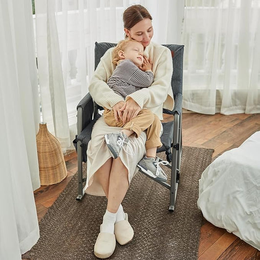 EVER ADVANCED Heated Oversized Folding Rocking Camping Chair, Heating Padded Portable Rocker Chair for Patio, Lawn and Outdoors, Heavy Duty Hard Armchair for Adults Supports 400lbs, Grey