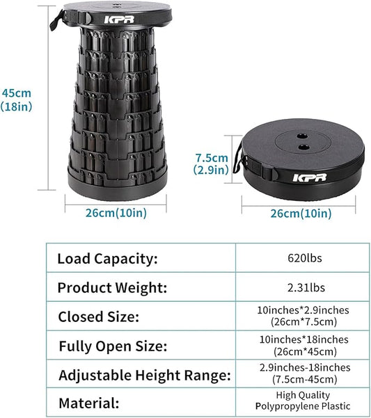 2025 Upgraded Collapsible Stool & 3IN1 Cushioned Carry Bag, Portable Telescopic Camping Chair, Adjustable Height Folding Step Stool Retractable Seat or Footrest for Outdoors & Indoor, Max 620lbs