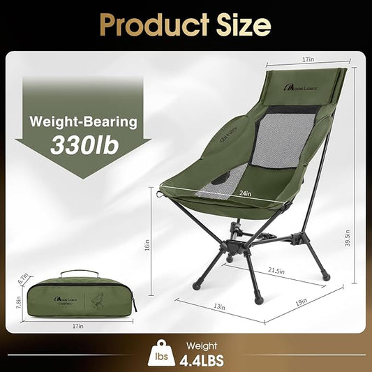 MOON LENCE High Back Folding Camping Chair, 330lbs Portable Compact Chair with Wide Seat & Ergonomic Back Support (Green)