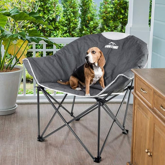 Suntime Sofa Chair, Oversize Padded Moon Leisure Portable Stable Comfortable Folding Chair for Camping, Hiking, Carry Bag(Grey 2 Pack)