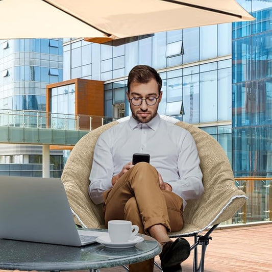 OUTDOOR LIVING SUNTIME Oversized Padded Camping Chair,Portable Comfy Outdoor Folding Moon Round Saucer Chairs for Adults with Holder and Carry Bag, Perfect for Hiking Lawn Patio Sports(Beige 2 Pack)