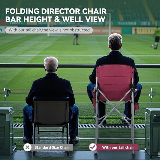 Tall Folding Directors Chair with Side Table 26.77" Seat Height Foldable Camping Chair Bar Stool for Makeup Artist Face Painting with Footrest and Storage Pocket Supports 350LBS