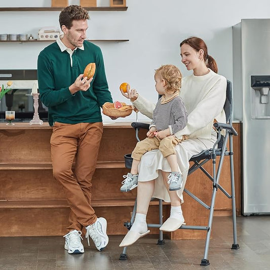 EVER ADVANCED Tall Folding Chair 31", Portable Directors Chair, Bar Height Camping Chair with Carry Bag and Footrest, Armrest, Heavy Duty Supports 300 Lbs Grey