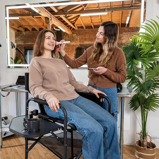 SUNNYFEEL Tall Camping Directors Chair, Portable Folding Artist Makeup Chair with Side Table, Pocket, Footrest, Heavy Duty for Beach,Trip,Picnic,Concert Outdoor Foldable Camp Lawn Chairs