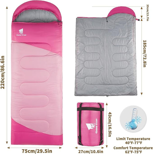 GEERTOP Backpacking Sleeping Bag for Camping, Lightweight Sleeping Bags for Adults Kids Summer Warm Cold Weather Hiking Travel