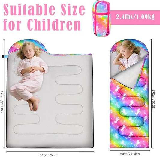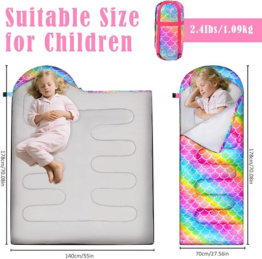 Camping Sleeping Bag for Kids Girls Boys,3 Season Warm Sleeping Bag Waterproof Portable for Outdoors Traveling,Camping
