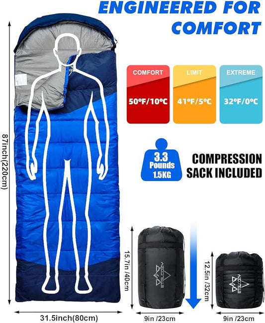 Sleeping Bag for Adults Cold Weather & Warm, Lightweight Backpacking Camping Hiking Essentials Gear for Kids 10-12 Girls Boys Compact w/Compression Sack Indoor Outdoor Sleep Must Haves