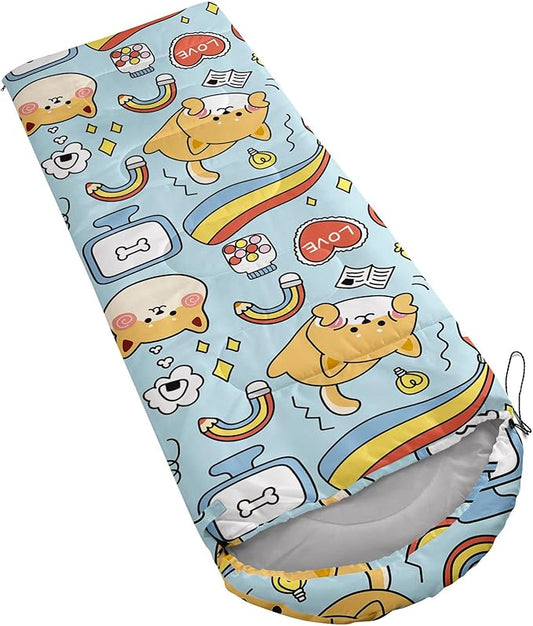 Kids Sleeping Bag for Boys Girls,Rocket Moon Print-Lightweight Warm Portable Outdoor Indoor-Waterproof Cold Weather Resistant Sleeping Bag for Camping Hiking