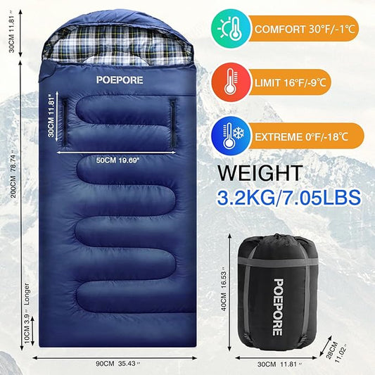 Sportneer Sleeping Bags for Adults, 0 Degree Sleeping Bag XL Flannel Winter Cold Weather Sleeping Bag with Detachable Hood Compression Sack for Camping, Backpacking, Hiking