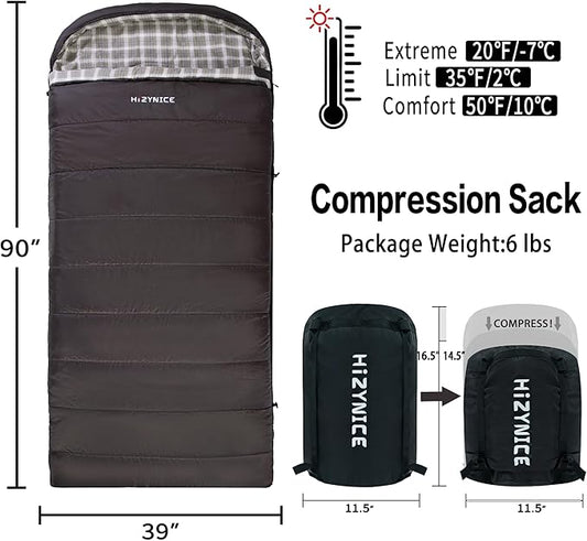 Cold Weather Sleeping Bag 100% Cotton Flannel XXL for Adults Big and Tall,Free Compression Sack