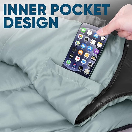 Litume Compact Velvet Lined Sleeping Bag, Lightweight Three Season Sleeping Bag, Water Repelling Sack for Warm and Cold Weather, Comfortable, Backpacking, Hiking, Camping, Traveling