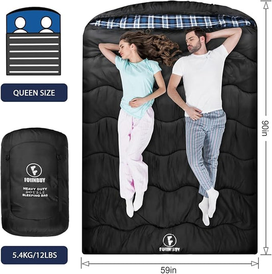 0 Degree Flannel Double Sleeping Bag for Adults, Couples or Family - Winter Queen Size Waterproof & Warm 2-Person Sleeping Bag for Cold Weather Camping, RV Travel