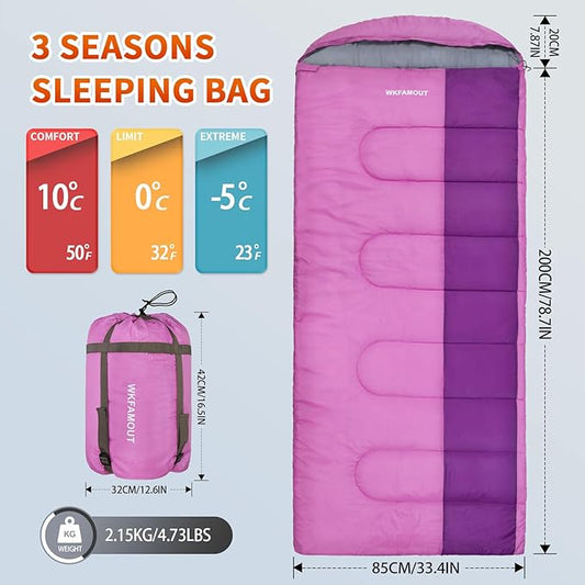 XL 10 Degree Sleeping Bags Waterproof for Adults 350GSM Machine Washable with Compression Sack for 3-4 Season Camping Outdoor