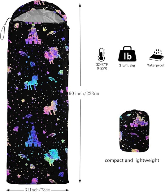 Axolotl Unicorn Sleeping Bag for Kids Boys Girls–Lightweight Warm Cold Weather Sleeping Bags,Waterproof Portable Sleeping Bag with Compression Sack for Camping Backpacking Outdoor Indoor