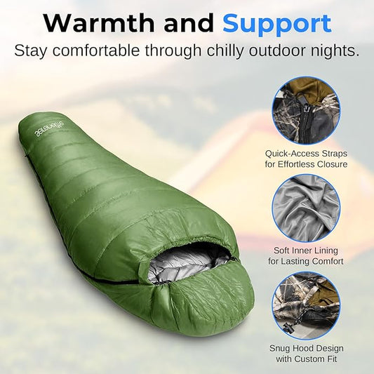 SereneLife 0 Degree Mummy Sleeping Bag – Military-Style, Lightweight & Waterproof for Extreme Cold, Stays Warm in 5–10°F, No-Snag Zipper, Compact Carry Bag & Travel Pillow for Camping & Backpacking