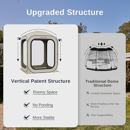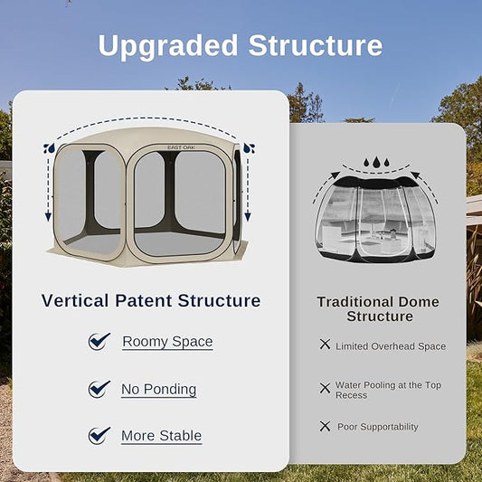 EAST OAK Screen House Tent Pop-Up, Portable Screen Room Canopy Instant Screen Tent 12 x 12 FT with Carry Bag for Patio, Backyard, Deck & Outdoor Activities, Beige