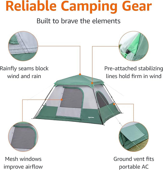 Amazon Basics Instant Camping Tent with Rainfly, Weather-Resistant, Quick Setup