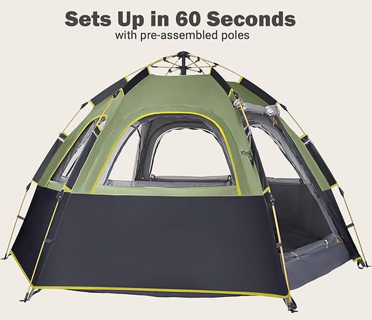 FanttikOutdoor Alpha C4 Ultra Camping Tent 4 Person Pop Up Instant Cabin Setup in 60 Seconds Portable Hub Tent with Rainfly & Windproof for Outdoor Camping & Overlanding