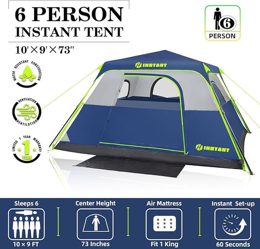 4/6/8 Person Instant Tent, Waterproof Pop Up Tents for Camping with Rainfly, 60 Seconds Easy Setup, Automatic Cabin Tent for Family Camping with Expandable Carry Bag & Upgraded Ventilation